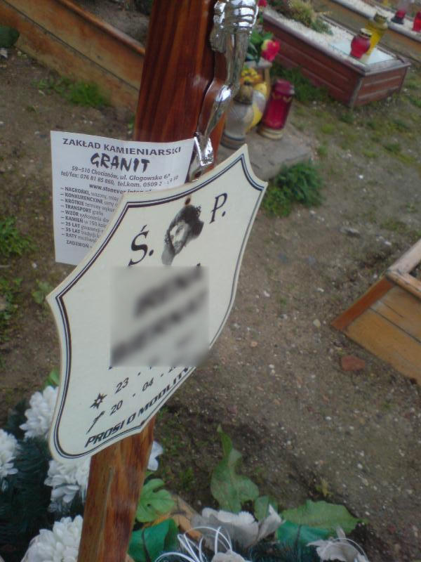 Na świeżutkich grobach (sprzed kilku miesięcy, w tym mojego ojca) ktoś porozrzucał ulotki zakładu kamieniarskiego oferującego płyty, pomniki i inne gadżety cmentarne. Sprytny zabieg - większość skrzynek ładnie się już zdążyła zapaść i powoli trzeba myśleć o zastąpieniu kopczyka ziemi czymś solidniejszym. A za pasem święto zmarłych i złoty okres zakładów tego typu.